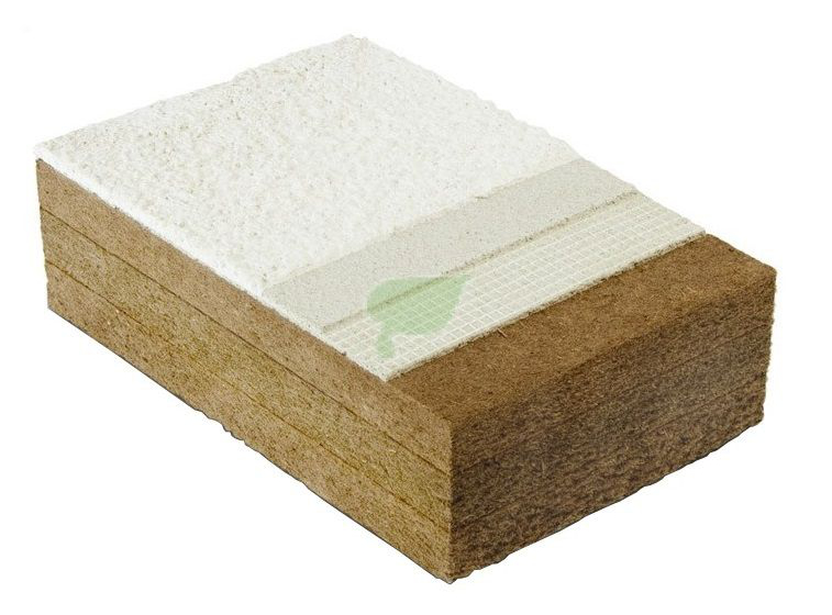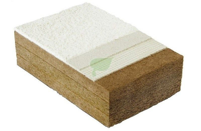 A natural render/plaster-carrying wood fibre insulation board  designed both as an external sheathing board for timber frame constructions or for direct-to-masonry applications in external wall insulation systems where the render is applied directly to the board.